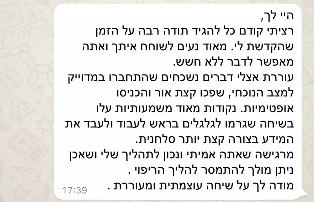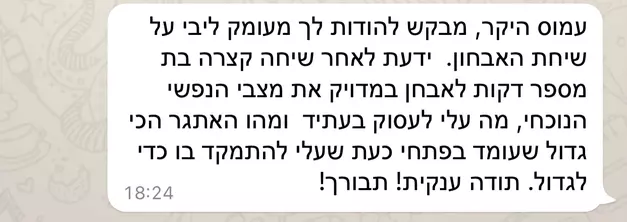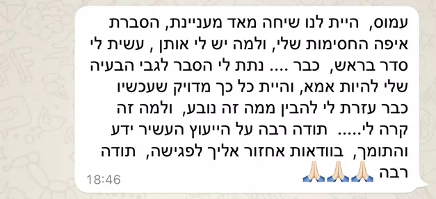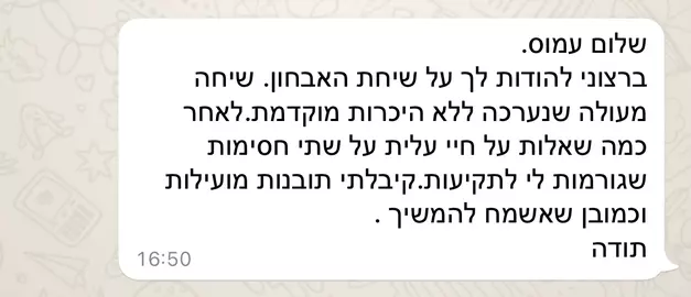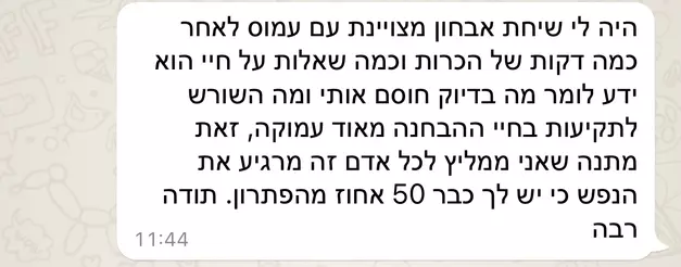 מכיוון שפיתחתי יכולת לאבחן בתוך רגעים בודדים החלטתי לתת את שיחת האבחון הזו לזמן מוגבל ולמספר אנשים מצומצם ב-מ-ת-נ-ה.