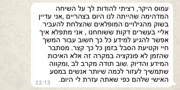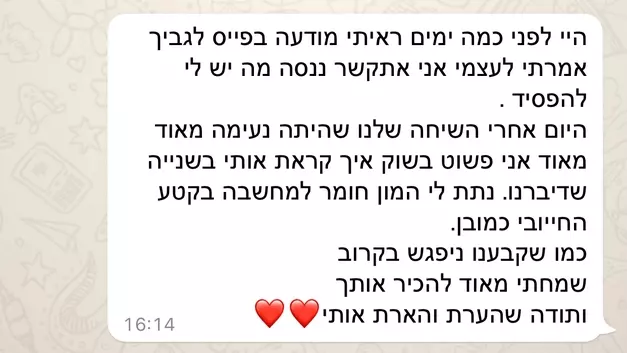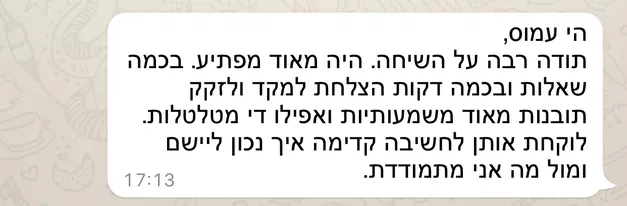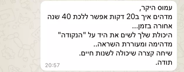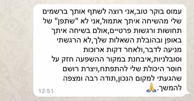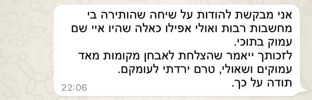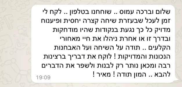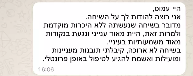 מדובר על שיחה שאורכת מספר דקות שבה אני מגלה לך: