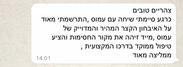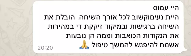 אני לא רוצה להעמיס עליך שהרי יש לנו באתר המון המלצות של מטופלים שאפשר להציץ בהן, לכן שמתי כאן עבורך רק מספר שניות מתוך ארבע עדויות לתהליכי אבחון מאוד קצרים שעברו איתי אנשים ואשר שינו את חייהם בדיוק כפי שקרה לאורנית. הנה בבקשה >>.