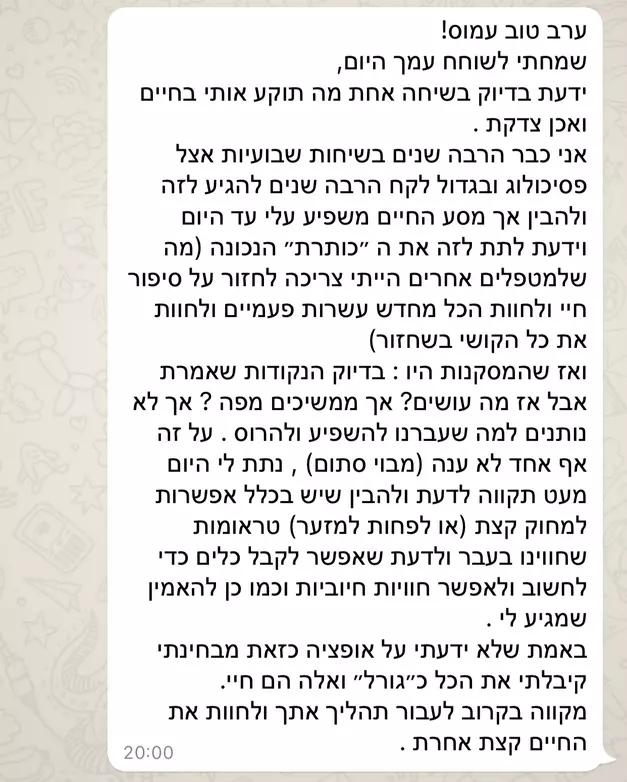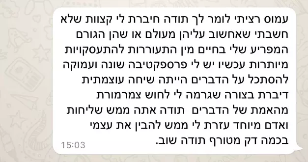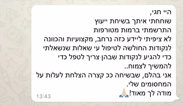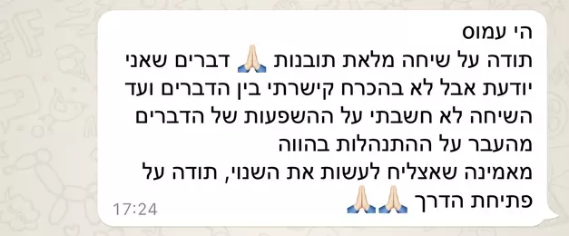 מה שקובע את הערך של הקורס הוא האם האדם שרכש את הקורס הצליח לעשות שינוי בחייו.