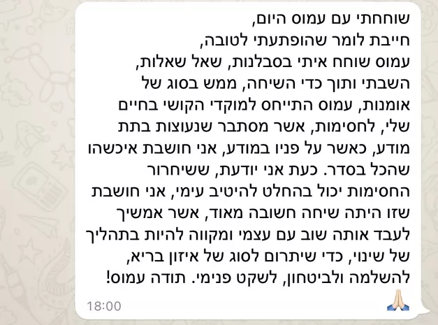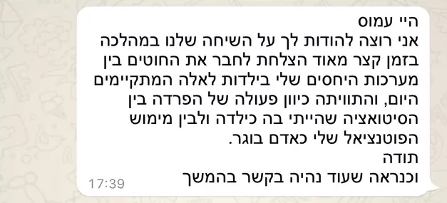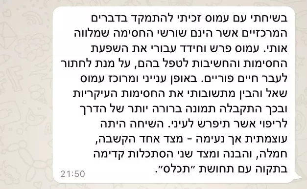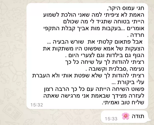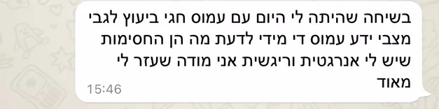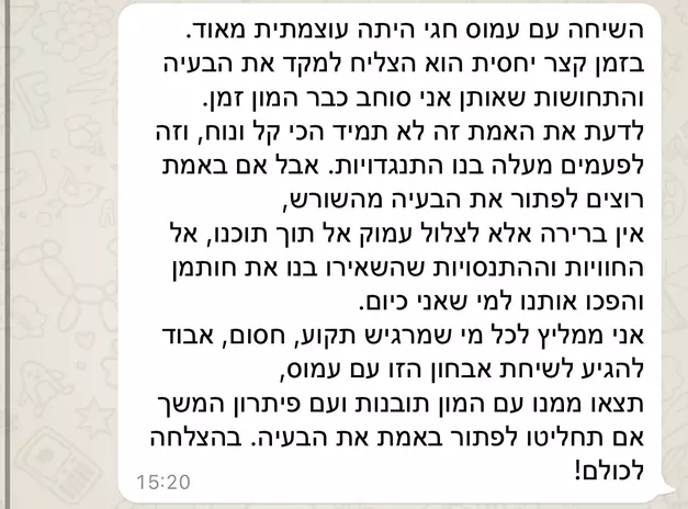 בנוסף, הסברתי לסיוון כי כאשר מבינים את שורשי הבעיה זה חמישים אחוז מהפתרון.